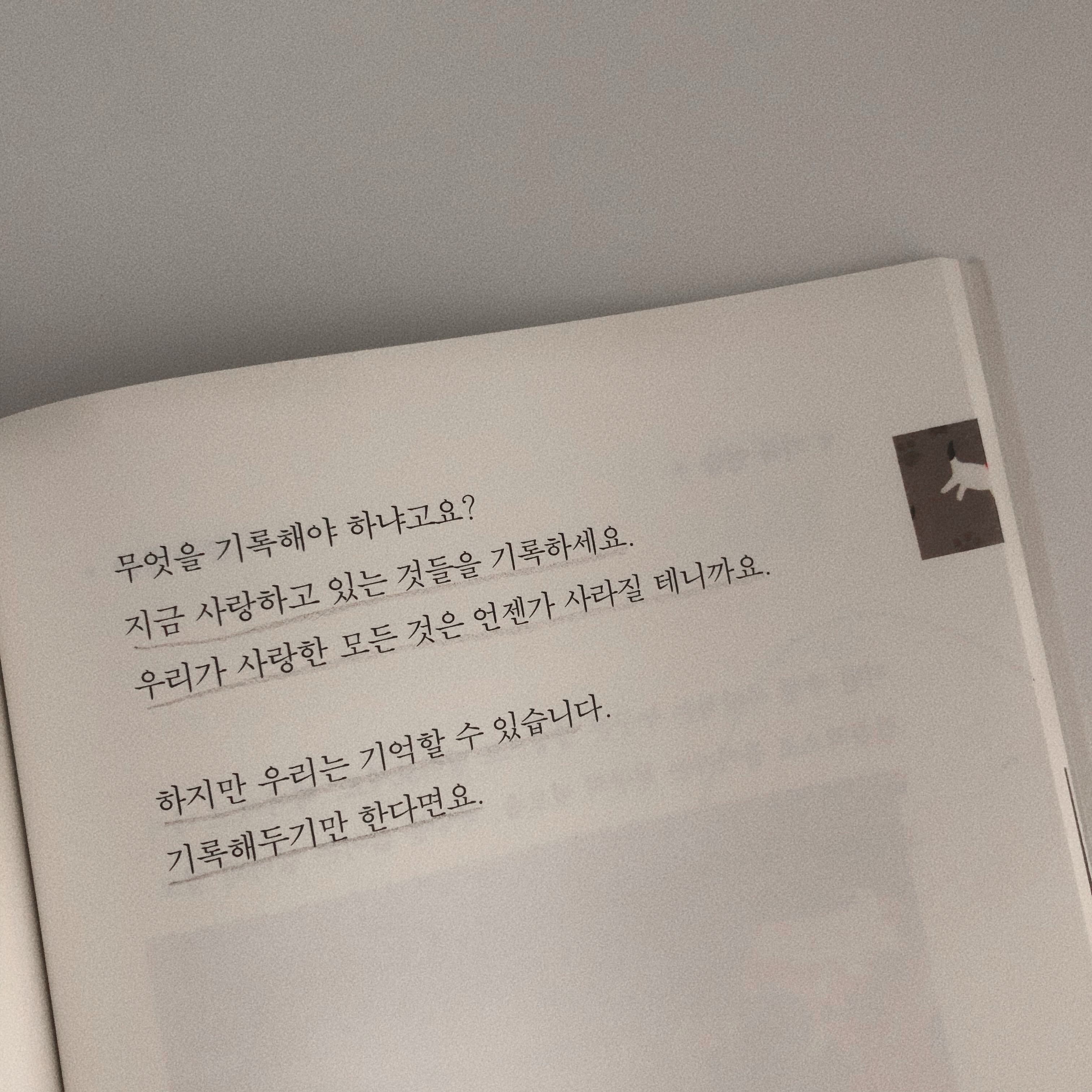지나왔지만 자세히 들여다보지 못했고, 닿았지만 다시는 닿지 못할 시간. 내가 원할 때면 들여다볼 수 있고, 손 뻗으면 닿는 거리에 나의 삶을 두기 위해 나는 기록한다. 오직 나만이 알고, 나만이 닿을 수 있는 것들. 그 소중한 순간들을 기억하고 싶다. "우리는 기억할 수 있다. 기록해두기만 한다면."
